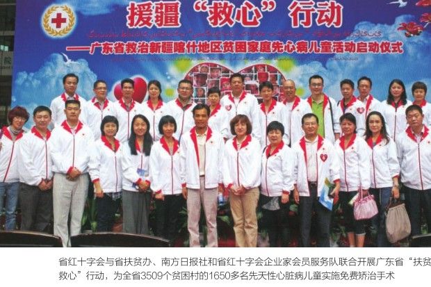 当年6月,根据省委省政府关于开展 “扶贫济困日”活动的部署,省红十字会与省扶贫办、南方日报社和省红十字会企业家会员服务队联合开展广东省“扶贫救心”行动,为全省3509个贫困村的1650多名先天性心脏病儿童实施免费矫治手术。这是一项惠及千家万户的惠民工程,为更多的患儿家庭化解痛苦,挽救年幼的生命。从项目启动至今,各服务分队配合广东省红十字会筛查河源、阳江、茂名、江门、清远、揭阳、肇庆、韶关、汕尾、潮州、湛江、增城共12个市60多个乡村县,共筛查1019人,已经安排手术500多人。