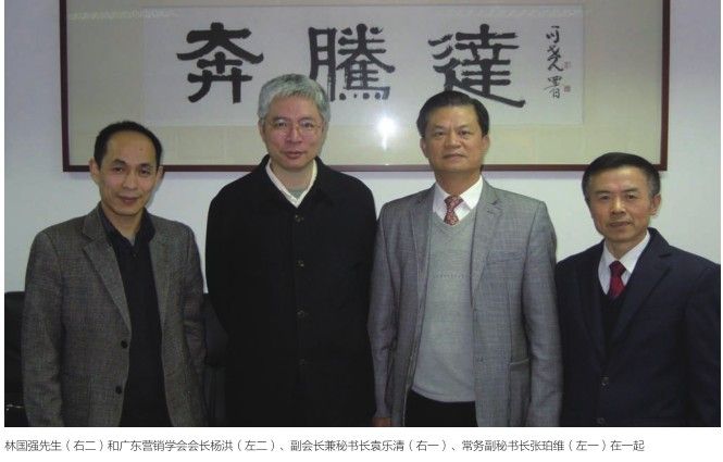 林国强1996年加入广东营销学会,曾就任学会副秘书长,不久就担任学会副会长。他参加了第一批广东社会科学大学和广东省社科院联合举办的市场营销研究生班,以及美国管理技术学院的管理学硕士生班的学习;他与温力虎教授一起,经常走访企业,与很多企业领导结下了深厚的情谊;他参加营销学会举办的营销沙龙、营销大赛等活动,目睹营销学会为企业培养了大量的营销人才,推动广东的经济腾飞;他参加营销学会组织的出境、出国考察活动,去台湾、去美国,与境外、国外的营销专家交流,开阔了视野。