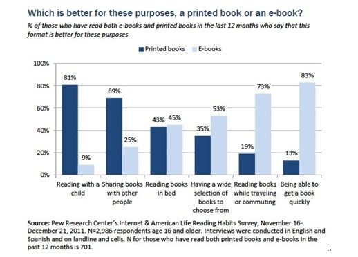 点评:有些是阅读习惯的问题,有些是阅读条件的问题,有些则可能是阅读设备的限制所致(例如电子书的分享有一定技术难度)。