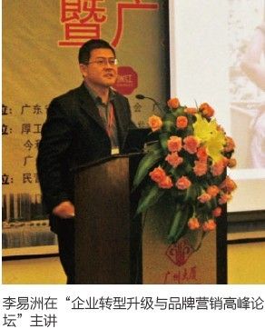 2012年3月20日,由广东营销学会主办的2011年年会暨“企业转型升级与品牌营销”高峰论坛,在广州大厦隆重举行。广东营销学会相关领导、会员、业界专家、教授、企业经理等各界人士400人齐聚一堂参加了此次论坛,南方电视台经视频道、民营经济报、南方农村报、亚太经济时报等媒体对论坛进行了详细报道。李易洲老师应邀作为主讲嘉宾发表了“品牌定位:营销策略的制高点”的主题演讲。