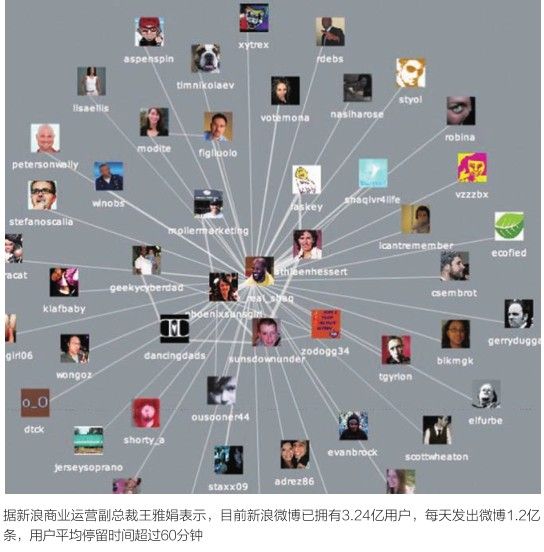 说起微博,国内知名的就有新浪、腾讯、网易和搜狐四大家,其中,又以发展最早、目前用户数量最多的新浪微博一家独大。自2009年8月内测开始,新浪微博打着“随时随地分享身边的新鲜事儿”的口号,成功俘获了广大网民的心。据新浪商业运营副总裁王雅娟表示,目前新浪微博已拥有3.24亿用户,每天发出微博1.2亿条,用户平均停留时间超过60分钟。也就是说,不仅中国共5.13亿网民中超过60%都成为了新浪微博用户,而且他们平均每一秒钟就创造了1389条微博,微博的市场潜力可想而知的巨大。