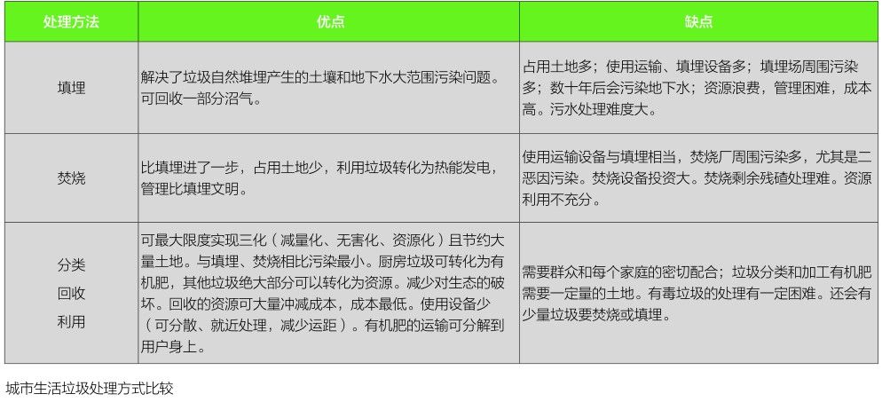城市垃圾处理,截至目前为止,人类共总结了三种处理方法,分别是:填埋、焚烧、分类回收利用。
