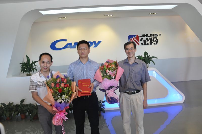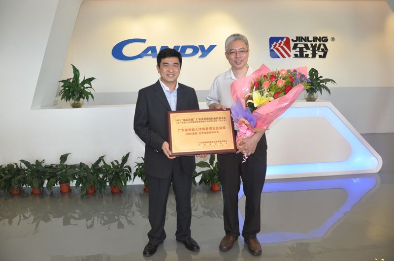 5月31日下午,广东营销学会会长杨洪、广东营销学会副会长兼秘书长袁乐清,学会常务副秘书长张珀维、江门市人力资源和社会保障局职业技能鉴定指导中心主任钟树培来到金羚电器有限公司,把一年一度的企业大奖“广东省技能人才培养突出贡献奖” 颁发给金羚电器,CANDY集团中国区总裁王麒贺先生代表公司领奖。此外,CANDY-金羚营销中心总经理蒋凌广先生荣获“伯乐奖”,金羚电器销售总监江国民先生包揽“广东省技术能手”和“广东省营销师大赛第一名”两大奖项。