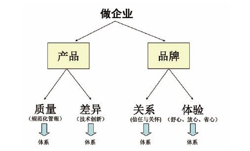 那么品牌与品质管理的关系是什么呢?做企业有两大核心的任务,第一是做产品,第二是做品牌。其实说白了,做一个企业那么复杂,你的核心工作就两个,一个就是把产品做好,一个就是把品牌打造出来。