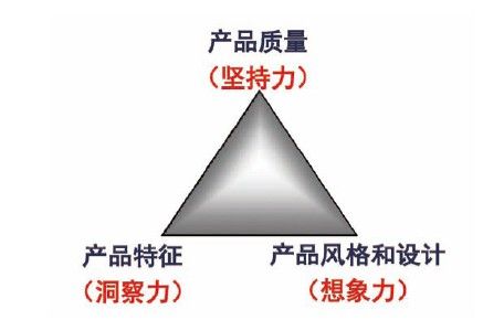 咱们讲产品质量,第一是要有坚持力。保持质量水平高之外还要保持质量的一致性。就是不能今天好明天不好,这个好那个不好,顾客买产品就像买六合彩一样,要靠运气,那就不行了。除此之外,第二就是产品特征,这是洞察力,就是要创造功能之外的附加值。附加值和产品没有关系,跟顾客的消费欲求有关系,通过产品它要表达什么。第三,你的产品还要有自己的风格和独特的设计,针对不同的市场你要有不同的理解,要有想象空间。这就是质量的三大体系。今天的企业做质量管理,其关注的仅仅是坚持力,而忽略了洞察力和想象力这两个基本的商业本质。做商业一定要有洞察力,一定要有想象力。