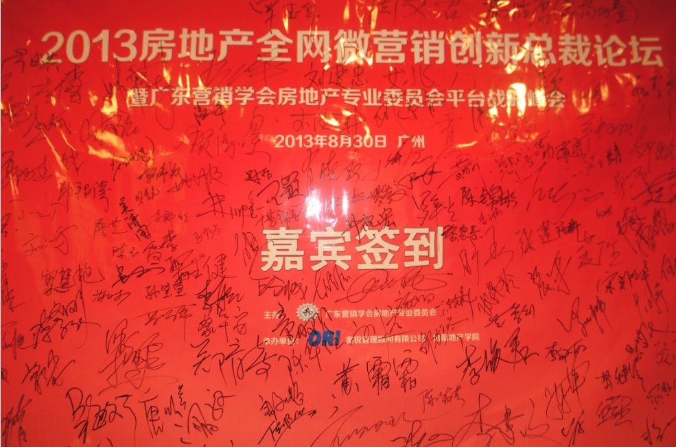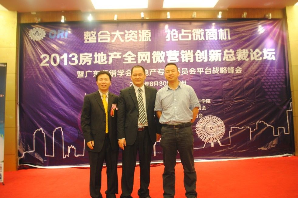 8月30日,由广东营销学会房地产专业委员会主办的2013房地产全网微营销创新总裁论坛暨广东营销学会房地产专业委员会平台战略峰会在广州健力百合酒店隆重举行。广东营销学会常务秘书长张珀维、副会长温小平,珠海市房地产经纪人行业协会会长陈交力,广东狮子会理事湛锦钊及相关行业协会还有高校代表出席本次论坛。全网O2O跨界整合第一人肖晓春及《售罄》作者邓小华老师现场做精彩分享,与来自广东以及周边省市近300家地产企业齐聚一堂,共襄盛举。