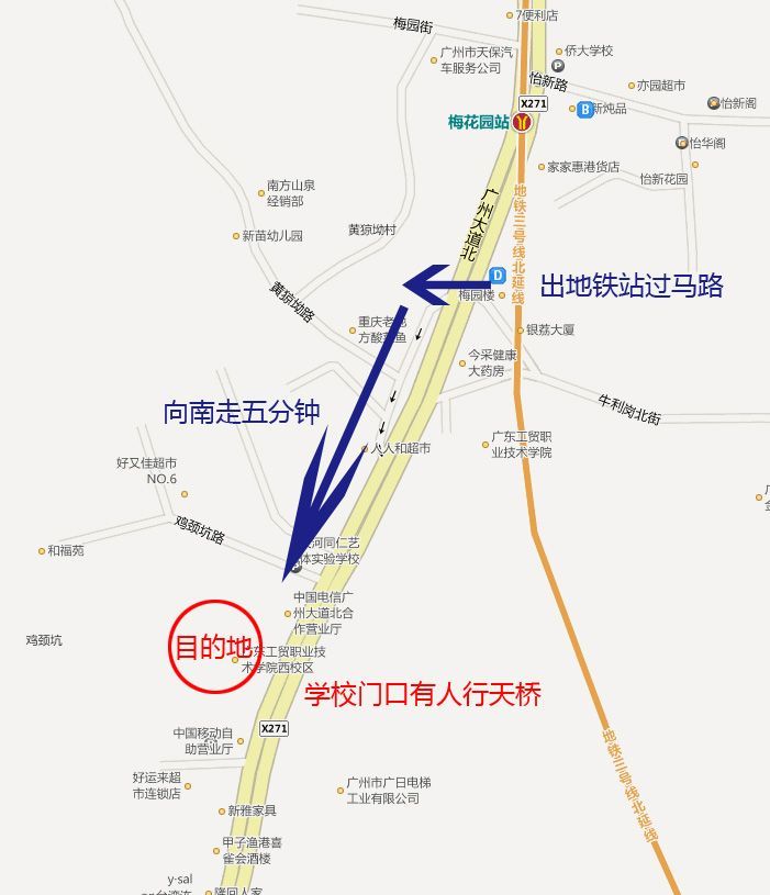 地铁三号线:“梅花园”D出口,农业银行旁边。