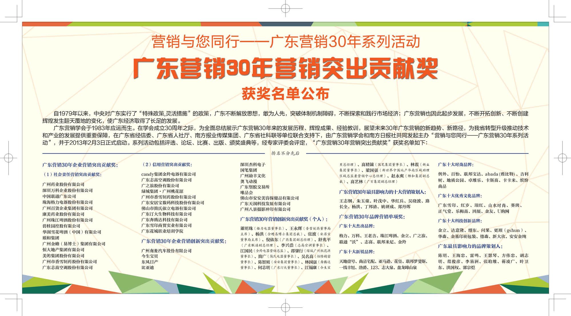 南方日报刊登广东营销30年获奖名单