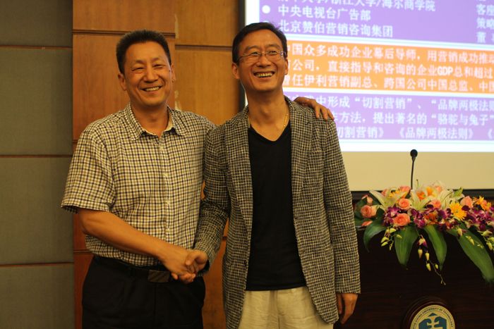 著名营销实战家——路长全,作为特邀主讲嘉宾,同时也作为即将加盟华南理工大学EMBA第二班的领军人物,此次以双重身份隆重登场。当晚,同是营销界大师级人物华红兵也友情客串,当华先生做完自我介绍将手中的麦克风交接的那一刻,镜头的快门记录下这深具历史意义的瞬间——从未谋面的两位营销大师,终于在这样一个场合握手相遇了。