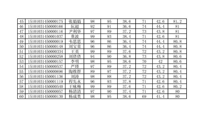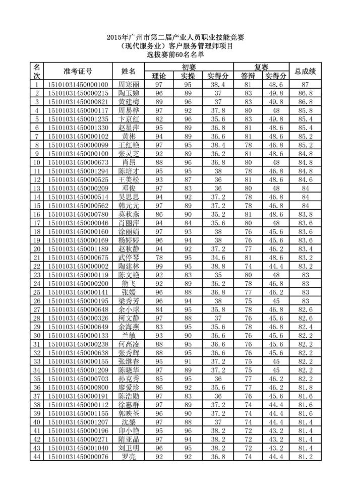 选拔赛前60名选手名单如下: