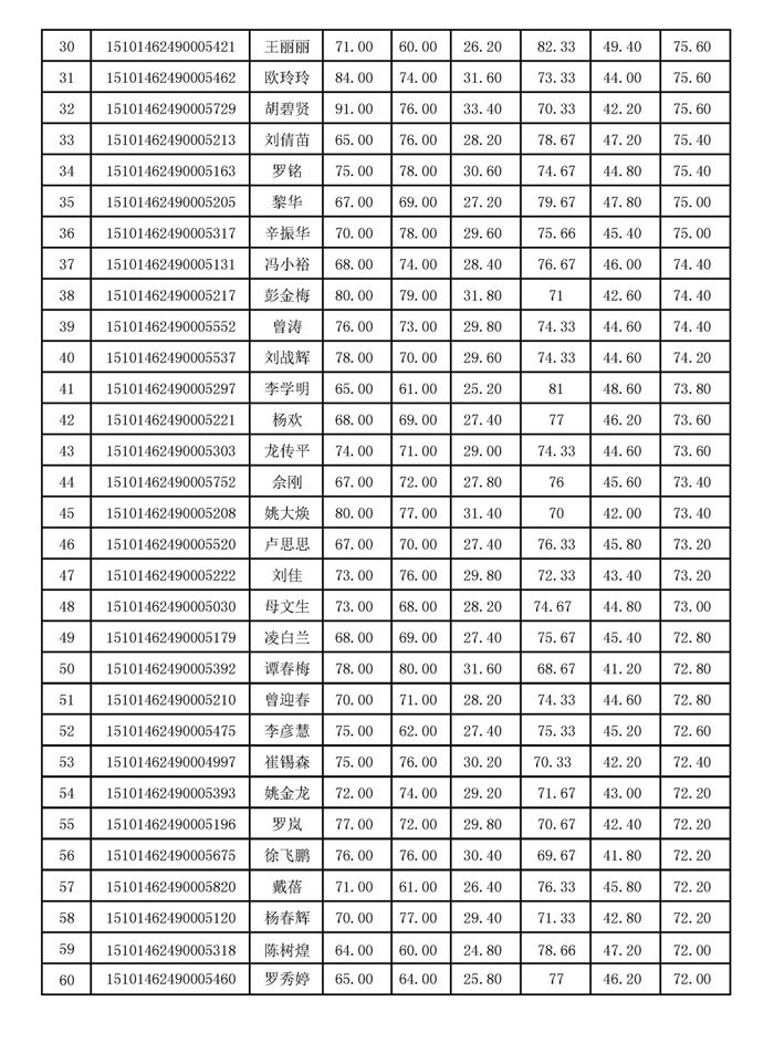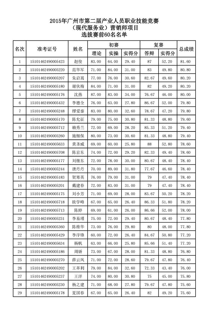 选拔赛前60名选手名单如下: