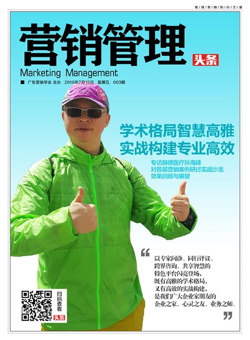 2016年7月18日,广东营销学会营销实战案例研讨沙龙第二期即将在华南理工大学举办。值此于2016年6月18日,由广东营销学会主办的首届营销实战案例研讨沙龙举办将满一月之际,为了总结经验、继续前进,我们专访赫德医疗合伙人、副总裁孙海峰,请他对首届营销实战案例研讨沙龙的效果进行回顾与展望。下面记述的是《营销管理》头条封面人物系列访谈编辑部(以下简称“营”),采访赫德医疗合伙人、副总裁孙海峰(以下简称“孙”)的对话实录。