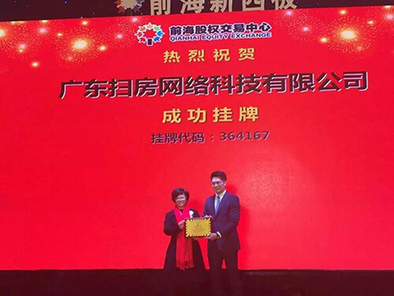 2016年1月,广东扫房网络科技有限公司在前海股权交易中心挂牌,成功登陆“新四板”开启资本市场。