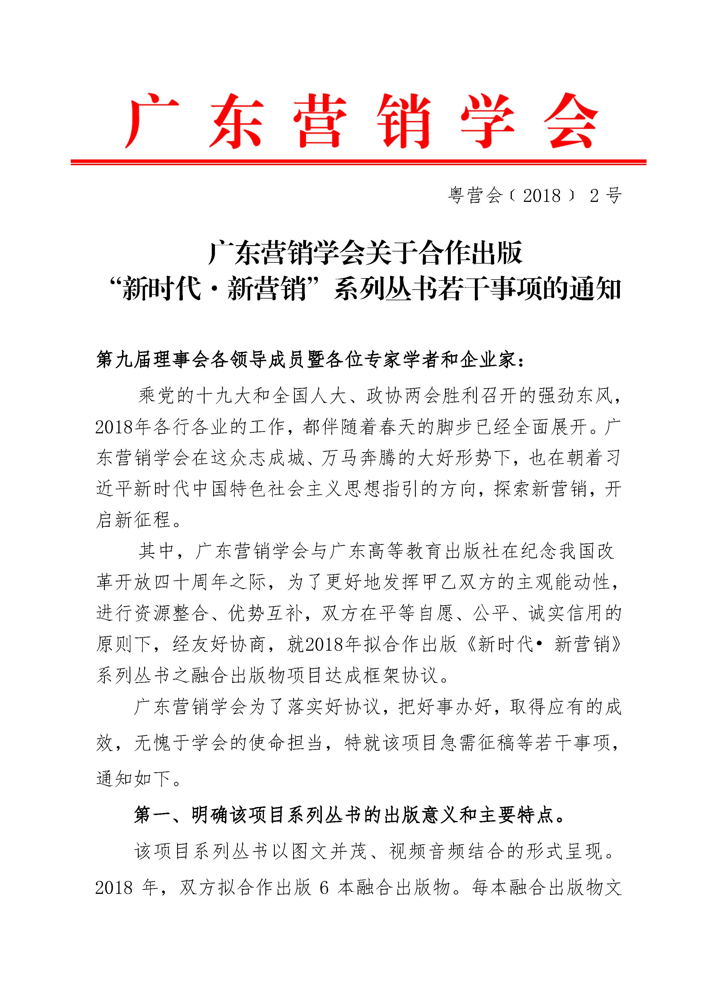 广东营销学会关于合作出版“新时代·新营销”系列丛书若干事项的通知