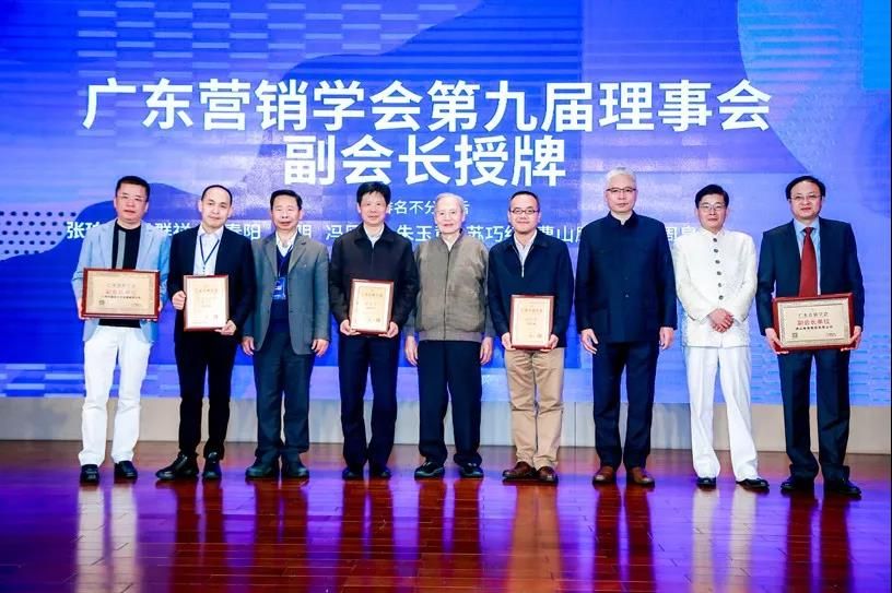 副会长颁发仪式:广东营销学会常务副会长兼秘书长张珀维;广东农工商职业技术学院党委书记、二级教授、广东营销学会副会长杨群祥;佛山电建集团有限公司党委书记、董事长阮晖;广州市嘉良文化发展有限公司董事长周泉润;南方医科大学国际教育学院副院长曹山鹰(排名不分先后)