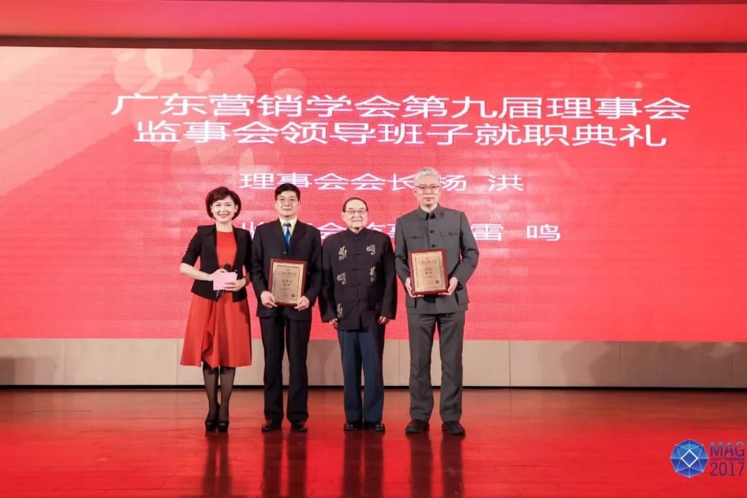 接下来,年会还举行了广东营销学会第九届理事会、监事会领导班子就职典礼。杨洪担任理事会会长,雷鸣担任监事会监事长;信息时报社原副总编辑袁乐清、广州正气堂堂主杨汤群担任监事会监事;张珀维担任理事会常务副会长兼秘书长,卜祥智、卫海英、马娅、王永辉、王海忠、王慧琴、叶卫东、冯冈平、朱玉童、刘建、刘春阳、江国民、孙海峰、苏巧红、李连柱、李易洲、杨晓燕、杨群祥、何志明、张波、张斌、陈志豪、陈国伟、陈明、林国强、罗德达、周志民、段淳林、黄永平、符吉新、彭雷清、温小平等人担任理事会副会长。