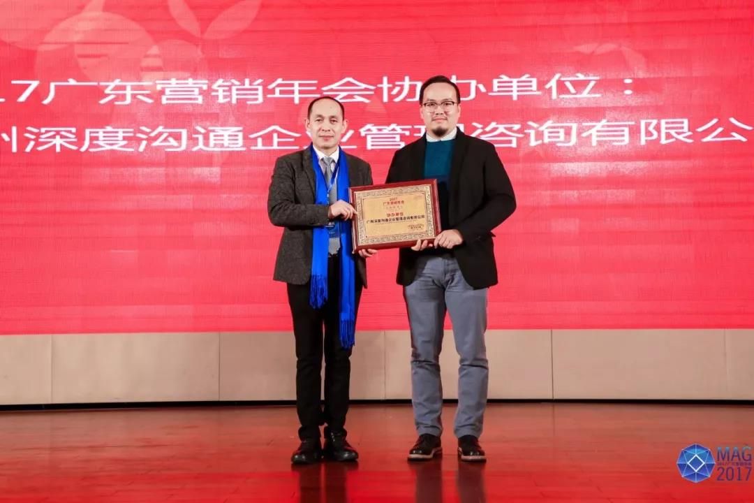 同时,由广东营销学会常务副会长兼秘书长张珀维颁发奖牌2017广东营销年会协办单位广州深度沟通企业管理咨询有限公司。