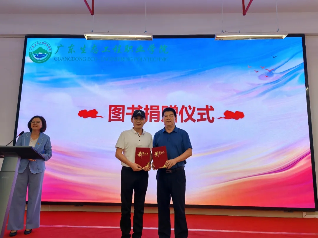 在接下来的捐书仪式上,张珀维副会长代表广东营销学会向学院图书馆捐赠了一批图书。图书馆文及迪馆长代表学校接受了捐赠,并回赠了图书捐赠证书。