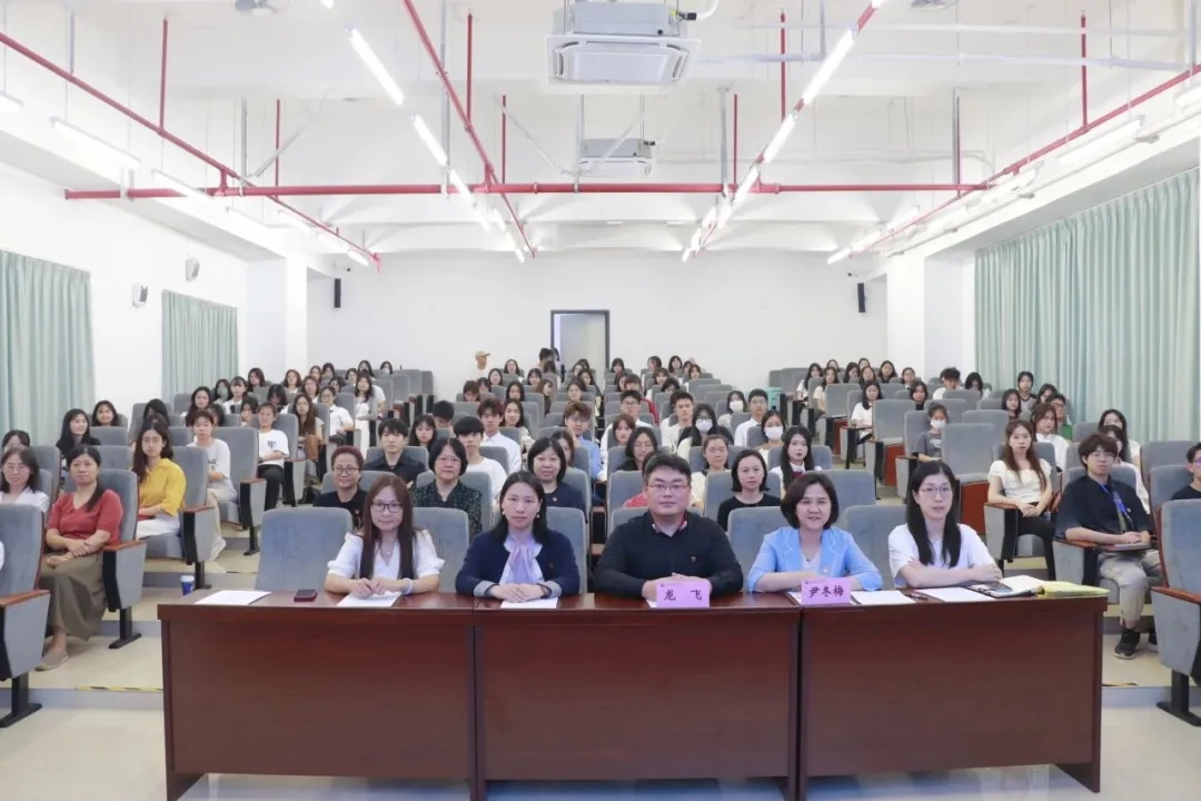 经济贸易学院党总支书记兼院长尹冬梅、广东营销学会常务副会长兼秘书长张珀维、常务副秘书长蔡淦绵、“广东省五一劳动奖章”获得者龙飞、图书馆馆长文及迪、副院长白华艳、以及经贸学院全体党员、学生干部和广东省技能大赛选手,共计180人参加会议。